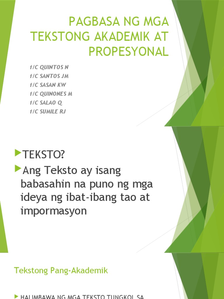 Pagbasa Ng Mga Tekstong Akademik At Propesyonal