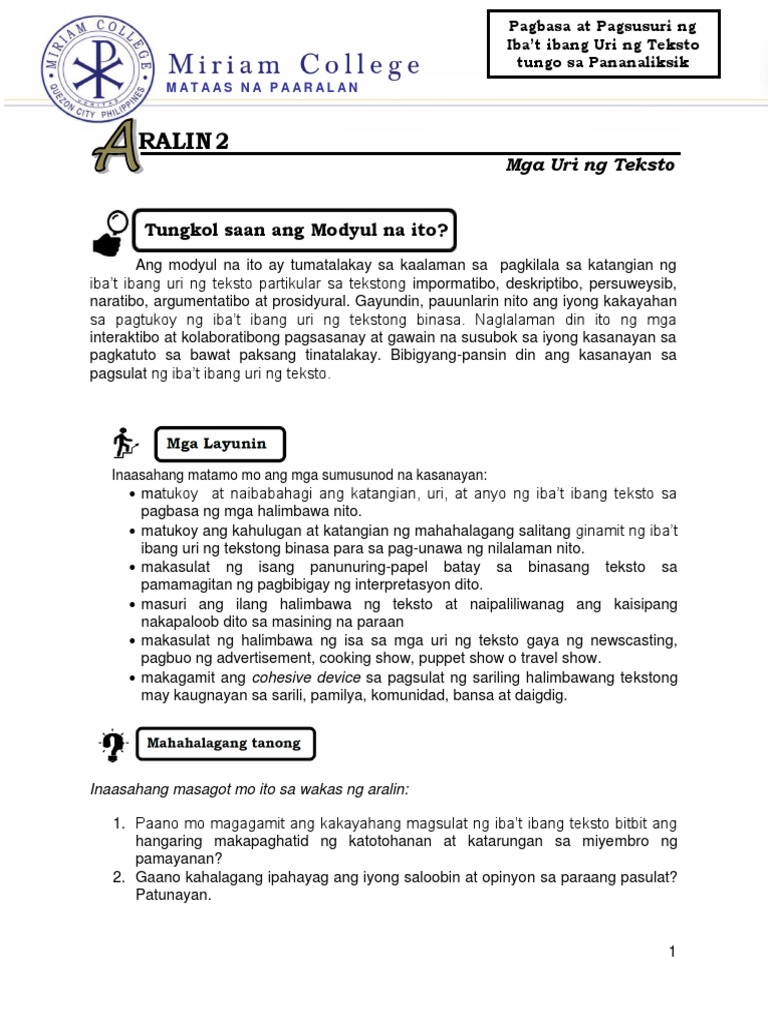 Modyul Sa Uri Ng Teksto 2nd Sem 2019 2020 Revised Pdf